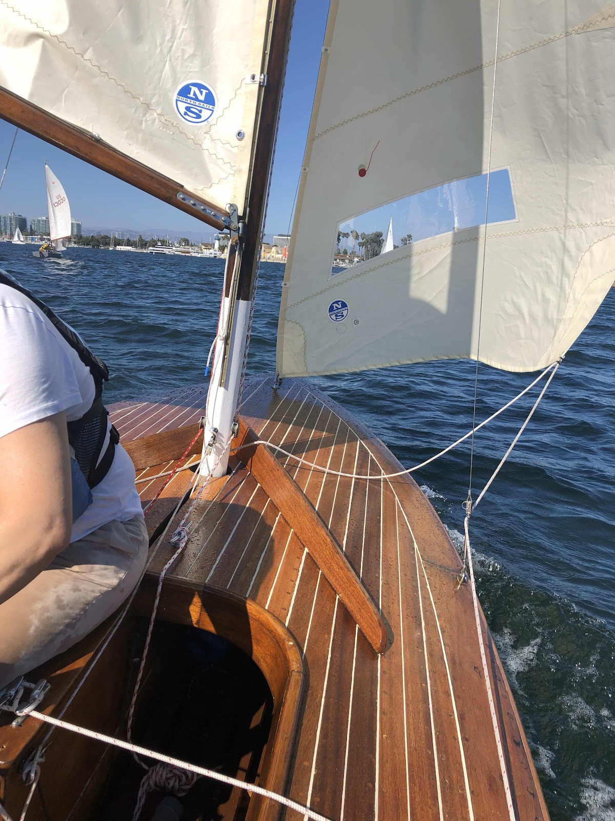 So my apologies for the late update. But back in early September she was completed and sailed in a regatta against a few other classic snipes. My goal was to make the start, have nothing break, and finish. We did all that and also won the regatta with a second and a first. Shady lady was great. Very solid and pointed well after we got the hang of it. She definitely took on some water and ther is some work to do on rigging, but all in all. Very happy. The leaking was mainly from the top seam of the centerboard trunk logs, which I think is an easy fit. That was not an areas I had paid Much attention to, assuming it was above the water line. The other issue was the sheets, which were very hard manage with the original jamb cleats; the angle from the blocks to the cleats required a lot of strength just to get the sheets pulled into them, and they came loose several times. Other than that, all was fantastic!